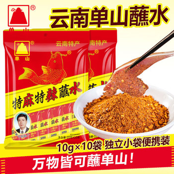 单山 蘸水特麻特辣10g*10袋云南特产辣椒面火锅烧烤干碟蘸料沾水小袋