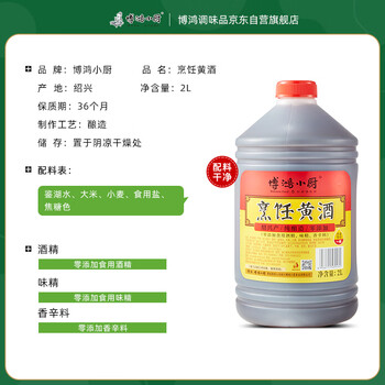 博鸿小厨料酒烹饪黄酒2L大桶绍兴黄酒增香海鲜小龙虾料酒去腥0防腐剂酿造
