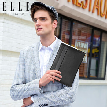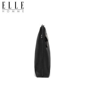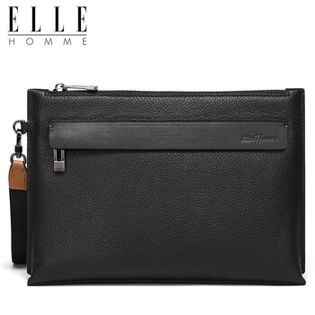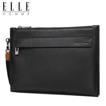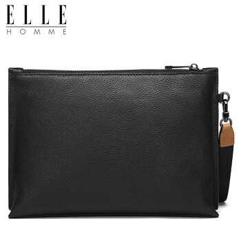ELLE HOMME商务男士手包柔软头层牛皮信封包 大容量多隔层手拿包EB084800101黑色 生日礼物送男友