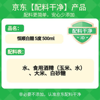 恒顺白醋 5度 500ml 凉拌提味炒菜腌制 酿造食醋 不添加防腐剂