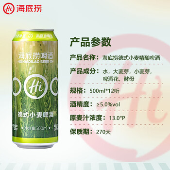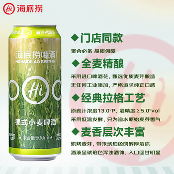 海底捞13度德式小麦啤酒精酿500ml*12听 整箱装国产 门店同款 聚餐送礼