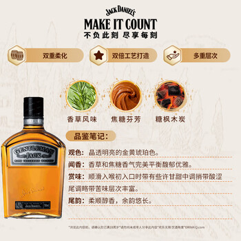 杰克丹尼(Jack Daniels) 美国田纳西州 调和型威士忌 洋酒 绅士 750ml 送礼