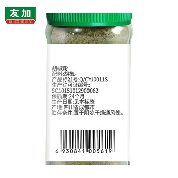友加食品 香辛料 纯白胡椒粉38g 玻璃瓶装 烧烤烹饪煲汤胡辣汤香辛调味料