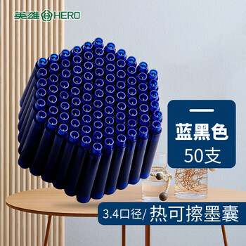 英雄(HERO) 热可擦墨囊 2102RT小学三年级练字可替换热敏摩易擦 3.4mm口径 50支装 蓝黑色
