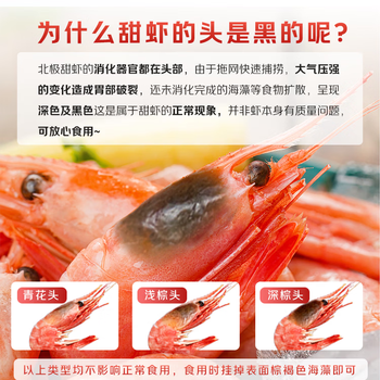 鲜生说 大号头籽北极甜虾净重3斤 40-50只/斤 95-99%头籽率 即食冰虾