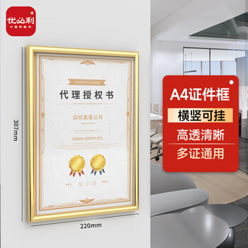 优必利 A4证件框 相框 塑料证书框画框 A4营业执照框 工商税务登记证框 横竖证件框 金色5064A