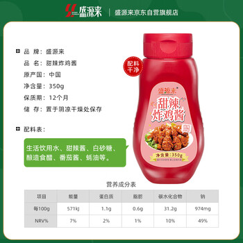 盛源来甜辣炸鸡酱350g 韩式鸡排鸡米花薯条鸡块快餐伴侣火锅烧烤酱料
