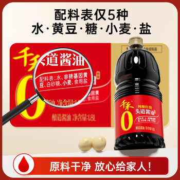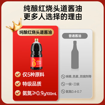 千禾 纯酿红烧 酿造酱油 1.8L【0添加 特级酱油】头道上色提鲜大瓶