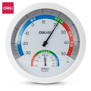得力(deli)温度计家用室内温湿度计台放壁挂式室内高精度温度湿度计颜色随机 悬挂式 大号9017