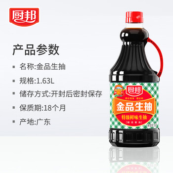 厨邦酱油 金品系列 生抽 酱油【特级黄豆酱油】1.63L 酿造酱油 调味品