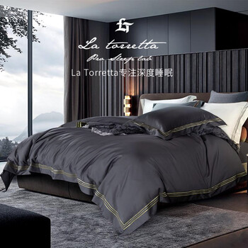 La Torretta120支长绒棉四件套纯棉四季高档床上全棉被套床单黑灰1.8/2.0米床