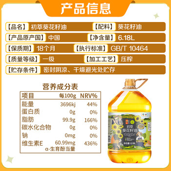 初萃葵花籽油6.18L*1