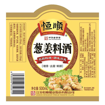恒顺葱姜料酒 10度 500ml 去腥增香提鲜 0防腐剂