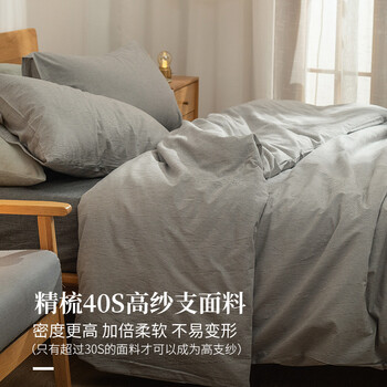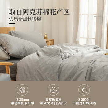 素时代床上四件套纯棉 A类100%全棉日式水洗棉被套1.8/2.0米床 灰密条