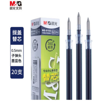 晨光AGR67005 MG-6102中性笔替芯笔芯墨蓝0.5mm专业办公事务型替芯 20支/盒 1盒装