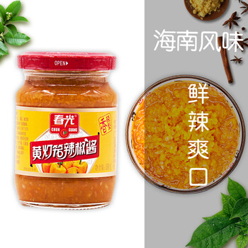 春光食品 海南特产香辣型黄灯笼辣椒酱150g 0脂拌面酱酸汤肥牛黄椒酱