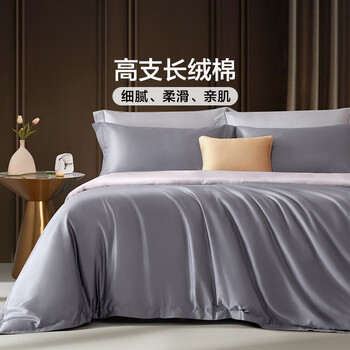 富安娜床上四件套纯棉60s长绒棉贡缎套件全棉床单被套双人加大床品230×229cm