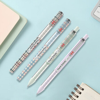 【开学必备】缤乐美(Paper Mate)中性笔0.5mm高颜值格纹拔帽式学生考试签字笔浅蓝G450黑色12支装