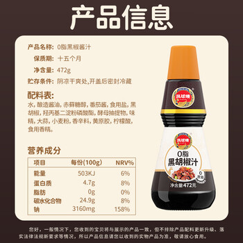 凤球唛0脂黑胡椒汁472g × 1