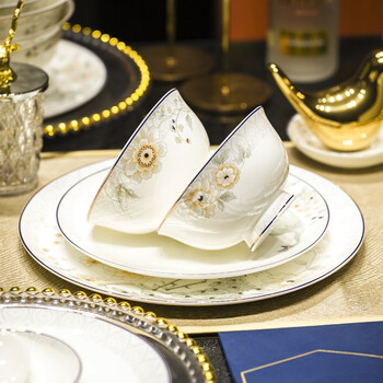 冠朴2025新款碗碟套装家用金边简约轻奢碗盘中式景德镇陶瓷餐具套装