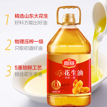 喜燕浓香花生油物理压榨一级食用油3L山东产粮油植物油