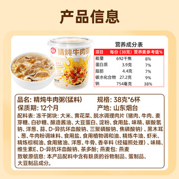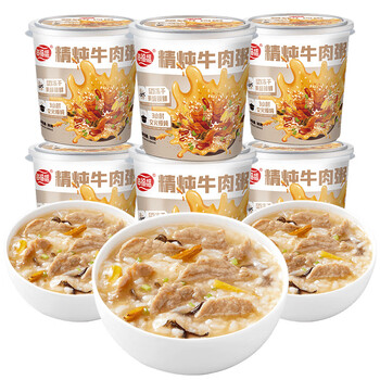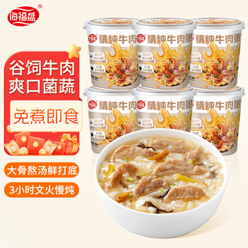 海福盛方便速食粥聚会早餐宵夜冻干八宝粥猛料精炖牛肉粥38g*6杯