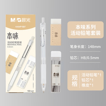 晨光(M&G)文具0.5mm活动铅笔套装 铅笔+HB铅芯+少屑橡皮 本味系列3件套 HAMP1887