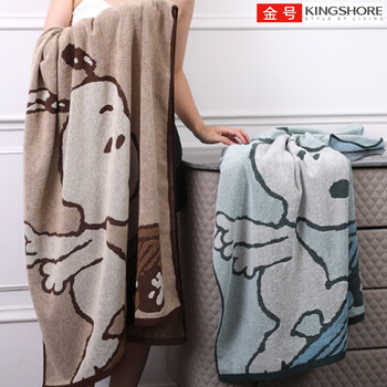 金号毛巾纯棉史努比卡通加大洗澡巾 柔软吸水A类大浴巾 棕色 180*78cm
