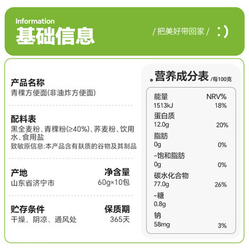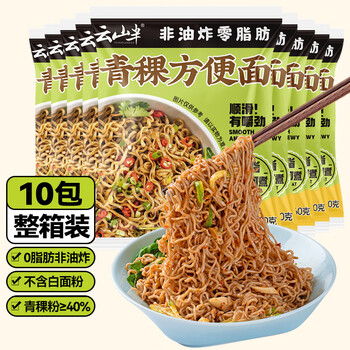 云山半0脂肪青稞方便面非油炸荞麦泡面饼慢碳水速食免煮粗粮面600g