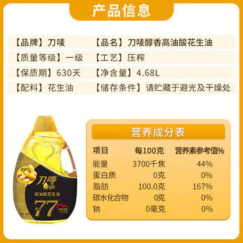 刀唛(Knife)【保真花生油】高油酸花生油4.68L 物理压榨一级精炼食用油