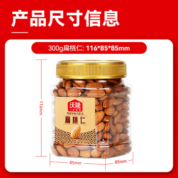 沃隆原味扁桃仁300g罐装巴旦木仁办公室解馋烘焙零食