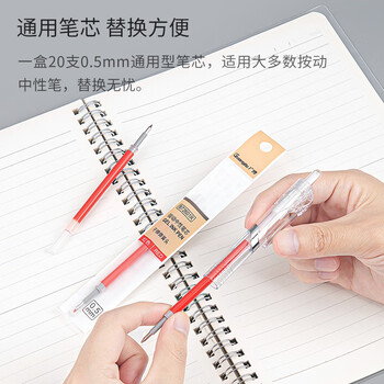 广博&三丽鸥笔芯12支 按动中性笔芯黑色0.5mm顺滑ST头刷题笔考试笔水笔签字笔芯 KT82060