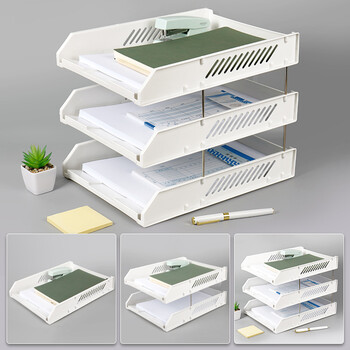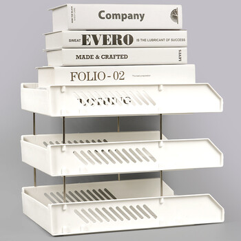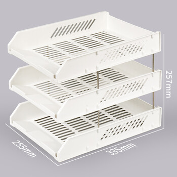 西玛(SIMAA)【全网热卖】莫兰迪三层镂空收纳文件座 自由拆卸组装文件盘/文件框/文件架 办公用品 皓月白6353