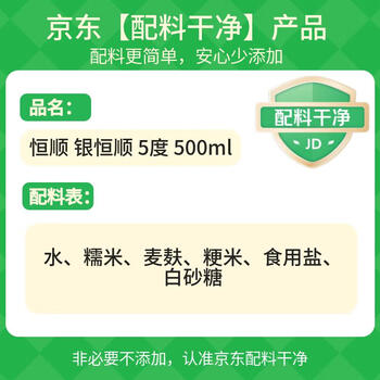 恒顺香醋 银恒顺 5度 500ml 糯米酿造炒菜蘸食 不添加防腐剂