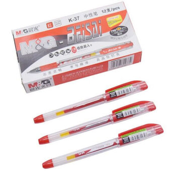 晨光K37葫芦头财务中性笔极细记账水性笔签字笔水笔0.38mm 红色 12支/盒 1盒装