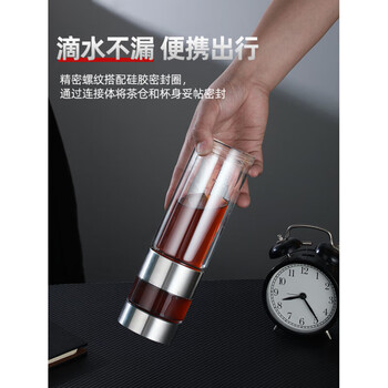 富光善水提环泡茶师茶水分离玻璃杯G2046-sh-300 黑色
