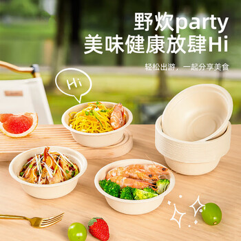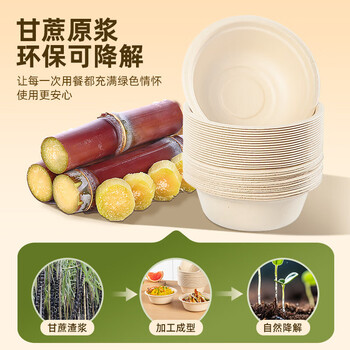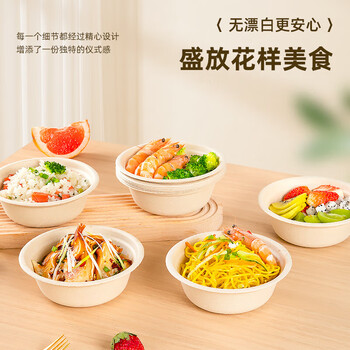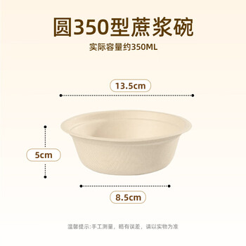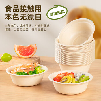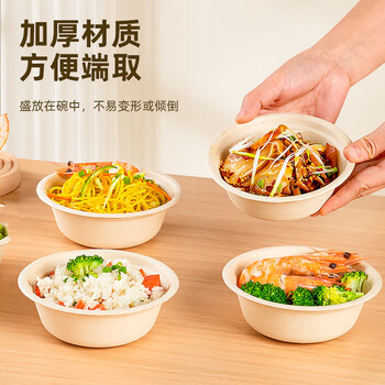 特美居(temeiju)一次性碗餐具甘蔗浆纸盘过年纸碗加厚本色可降解纸碗20只350型