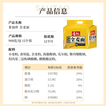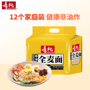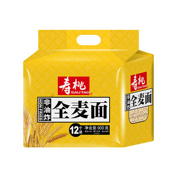 寿桃全麦面方便面低脂粗粮面代餐波纹面饼非油炸方便速食12个装900g