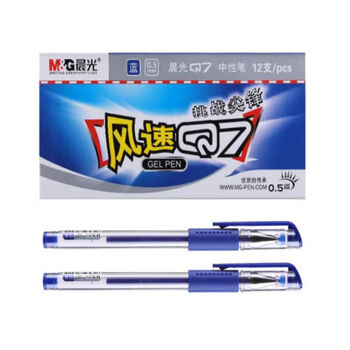 晨光(M&G)文具Q7蓝色色中性笔 子弹头签字笔 经典拔盖公水笔 0.5mm 12支/盒 1盒