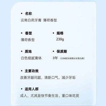 云南白药牙膏留兰香型215g +薄荷清爽牙膏230g 大容量 共445g