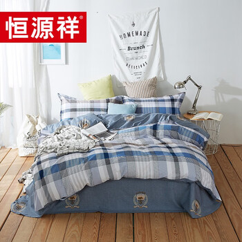 恒源祥 蓝调空间全棉四件套 TBK2018 1.5米双人床 200*230cm