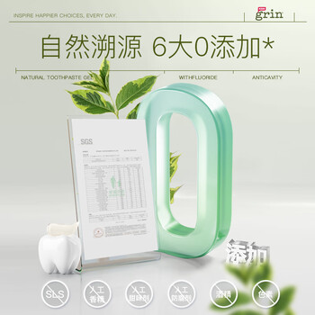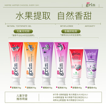 grin儿童牙膏含氟防蛀3-6-12岁宝宝婴幼儿青少年牙膏45g葡萄味