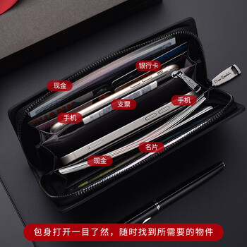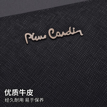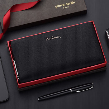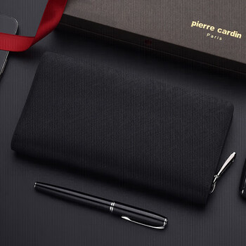 皮尔卡丹男士手包长款牛皮钱包拉链手拿包礼盒送礼黑色