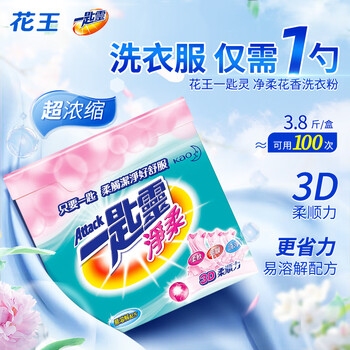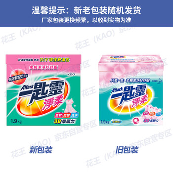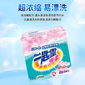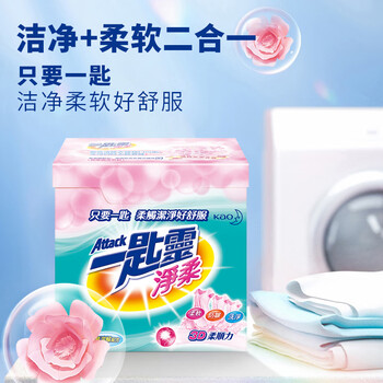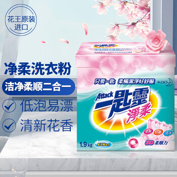 花王(KAO)超浓缩洗衣粉1.9kg 净柔软顺滑防褶皱去污渍进口家用机洗衣服皂粉