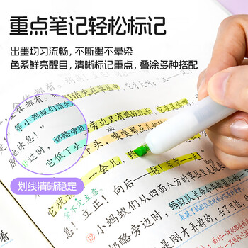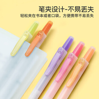 点石按动荧光笔小清新简约透明柔色系彩色划重点记号笔淡彩色学生标记绘画笔开学季805s荧光系套装/6支