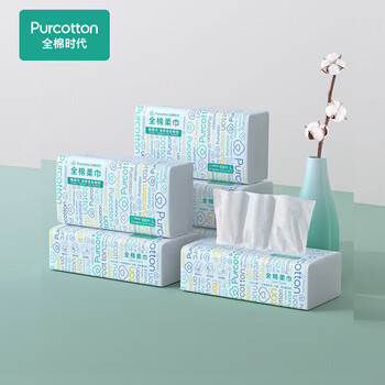 全棉时代抽纸 一次性干湿两用洁面巾家用100%纯棉纸巾20CM*20CM 100抽*6包