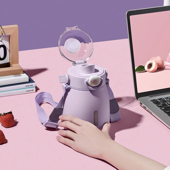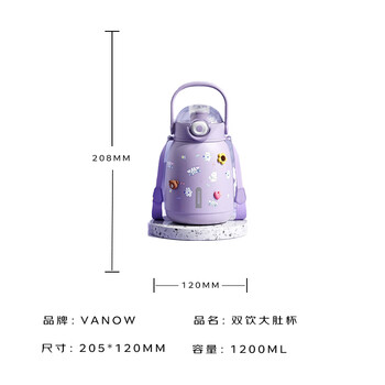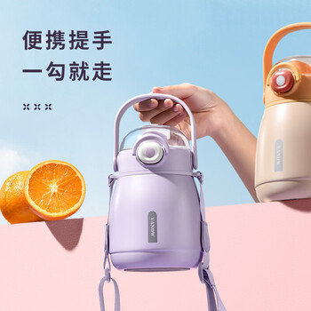 Vanow保温杯女高颜值大容量儿童学生吸管水杯子便携316不锈钢大肚杯壶