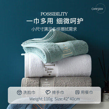 康尔馨希尔顿酒店纯棉方巾礼盒 小毛巾全棉家用三条装 白色/蓝绿/典雅蓝