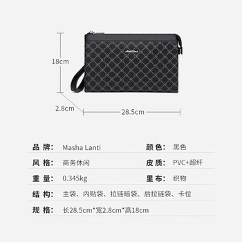 马莎兰缇(MashaLanti)男士手包休闲商务手抓包大容量拉链手拿包男信封包生日礼物送老公