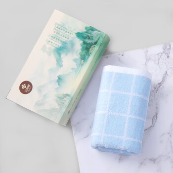 洁丽雅(Grace)新疆长绒棉抗菌毛巾纯棉色织格子擦脸巾舒适柔软国风礼盒单条装